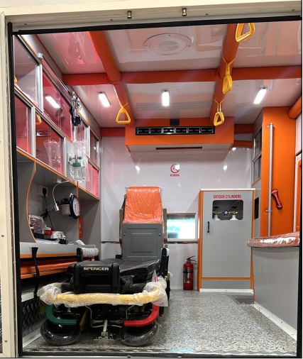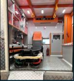 The ambulance sets new standards worldwide. When conditions demand a vehicle that can go almost anywhere while carrying a full set of front line equipment, the new 4×4 is the vehicle of choice. The combination of raw power and detailed German engineering especially against the background of ergonomics, safety, hygiene and patient handling creates an unique ambulance. The base vehicle is the powerful Ford F350 chassis with an diesel engine that has 8 cylinders, a displacement of 6.7 litres and a 10 speed automatic transmission. The box body is adapted aerodynamically to the base vehicle and is made from heavy duty aircraft-industry technology.